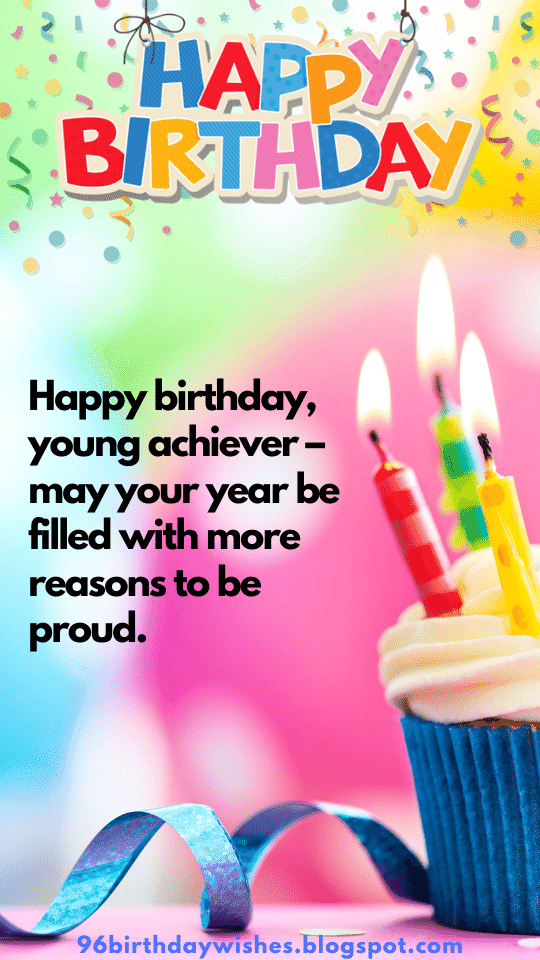 "Happy birthday, young achiever – may your year be filled with more reasons to be proud."
