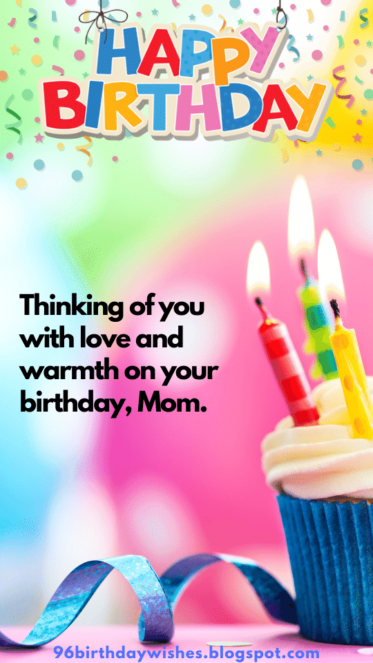 "Warmest birthday wishes, Mom! May your day be filled with joy and laughter."